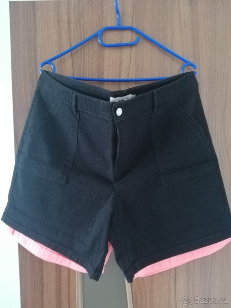 Dámské velké šortky F@F, vel. 46. Šortky na silnější stehna. Důvod prodeje, změna velikosti, jsou na mně velké. Cena platí za oboje. Barva výrazná černá + lososová. Platba předem na účet. Doporučená zásilka 129 Kč, Zásilkovna 90 Kč