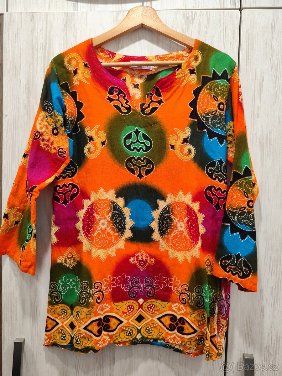 Krásná etno halenka v pěkném stavu bez vad, velikost L, sedí i na M, větší S