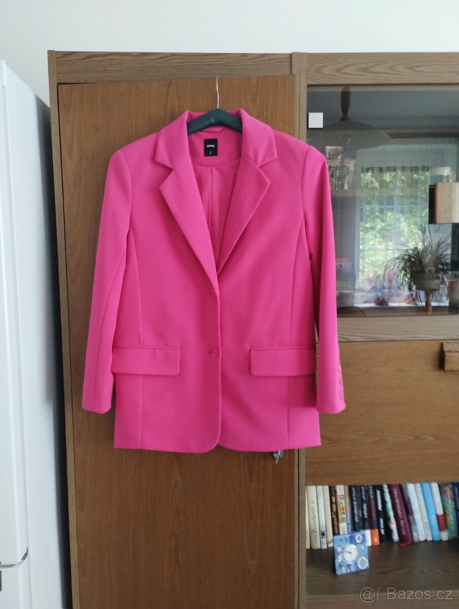 Dámské sako - růžové - [17.2. 2026]Dánské sako růžové, velikost 36/38, s podšívkou. Sako je málo nošené - téměř nové. Vpředu na zapínání na 2 knoflíky. 70% vlna, 30% akryl, podšívka 100% polyester