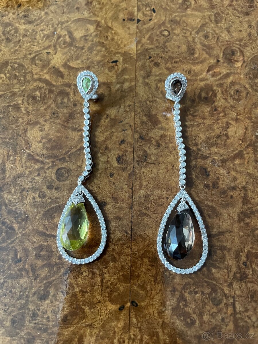 Prodam Dámské naušnice Bílé zlato 750/18k Vaha 13,60g cca170 briliantu,centrální Citrin a Zahňeda. Znalecký posudek.Designové hodně zlatnicke práce viz.foto. Předání Praha centrum