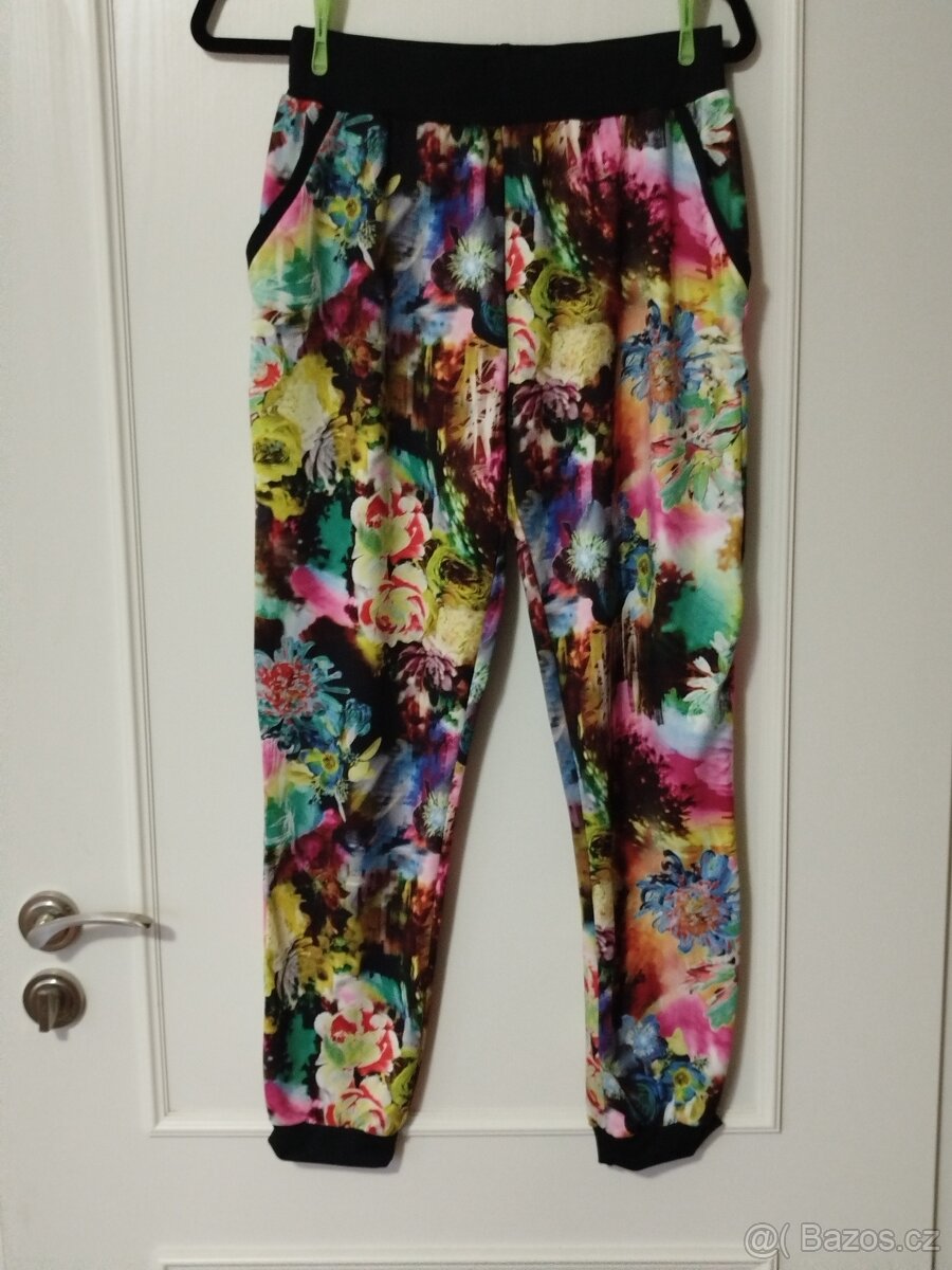 Pohodlné kalhoty s kytickama