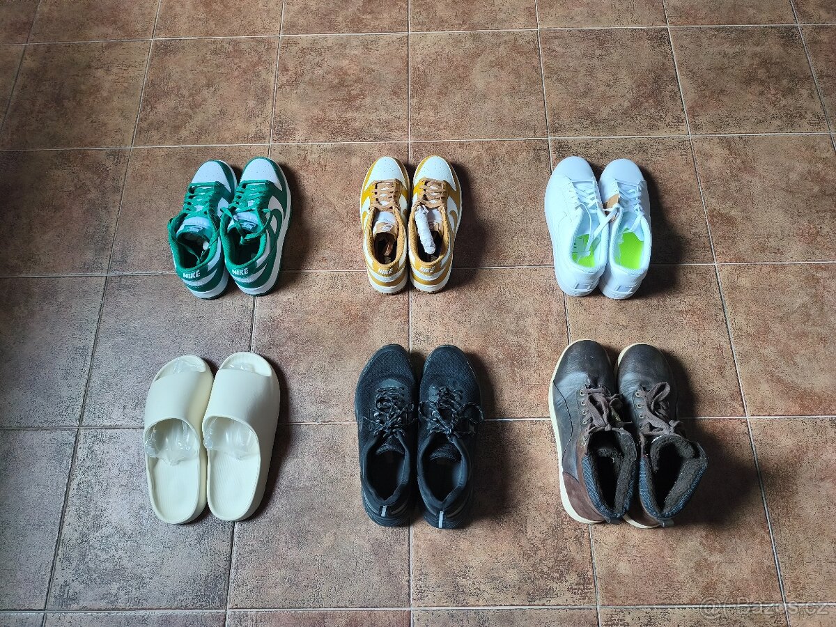 Prodám pánské tenisky Nike, Nike Sportswear, Champion, pantofle Shein a zimní boty Lotto. Některé jsou úplně nové, některé jsou krátce nošené a některé jsou nošené. Vše je originál.