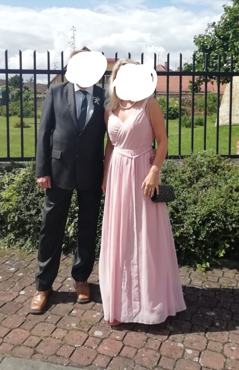 Krásné dlouhé společenské šaty v lososové barvě ve vel. M. Vystužený přední díl.