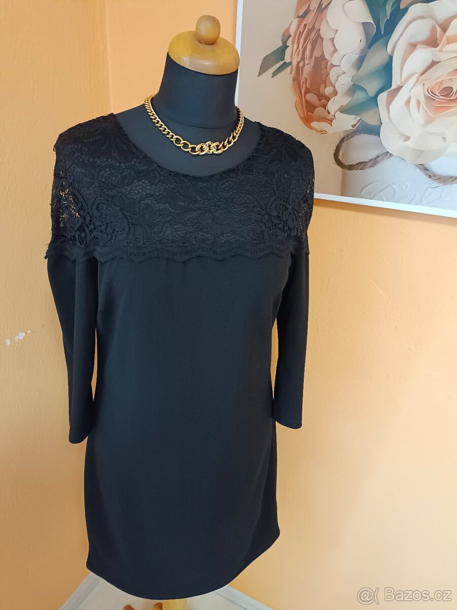 Elastické šaty s krajkovou vsadkou.