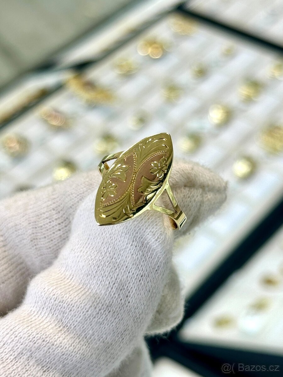 Nabízíme k prodeji zlatý prsten s kombinací žlutého a růžového zlata. Řádně opuncováno. Použité zboží.