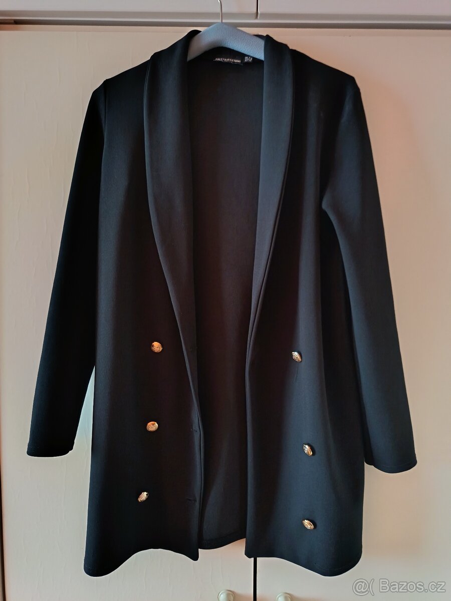 Prodám dámské černé sako se zlatými knoflíky 3 ks na každé straně. Pružné vel. cca 40. 100% stav. Délka 80 cm, šířka 48 cm jedna strana, délka rukávu 60 cm. Osobní odběr Praha Stodůlky. Zašlu přes zásilkovnu nebo balíkovnu.