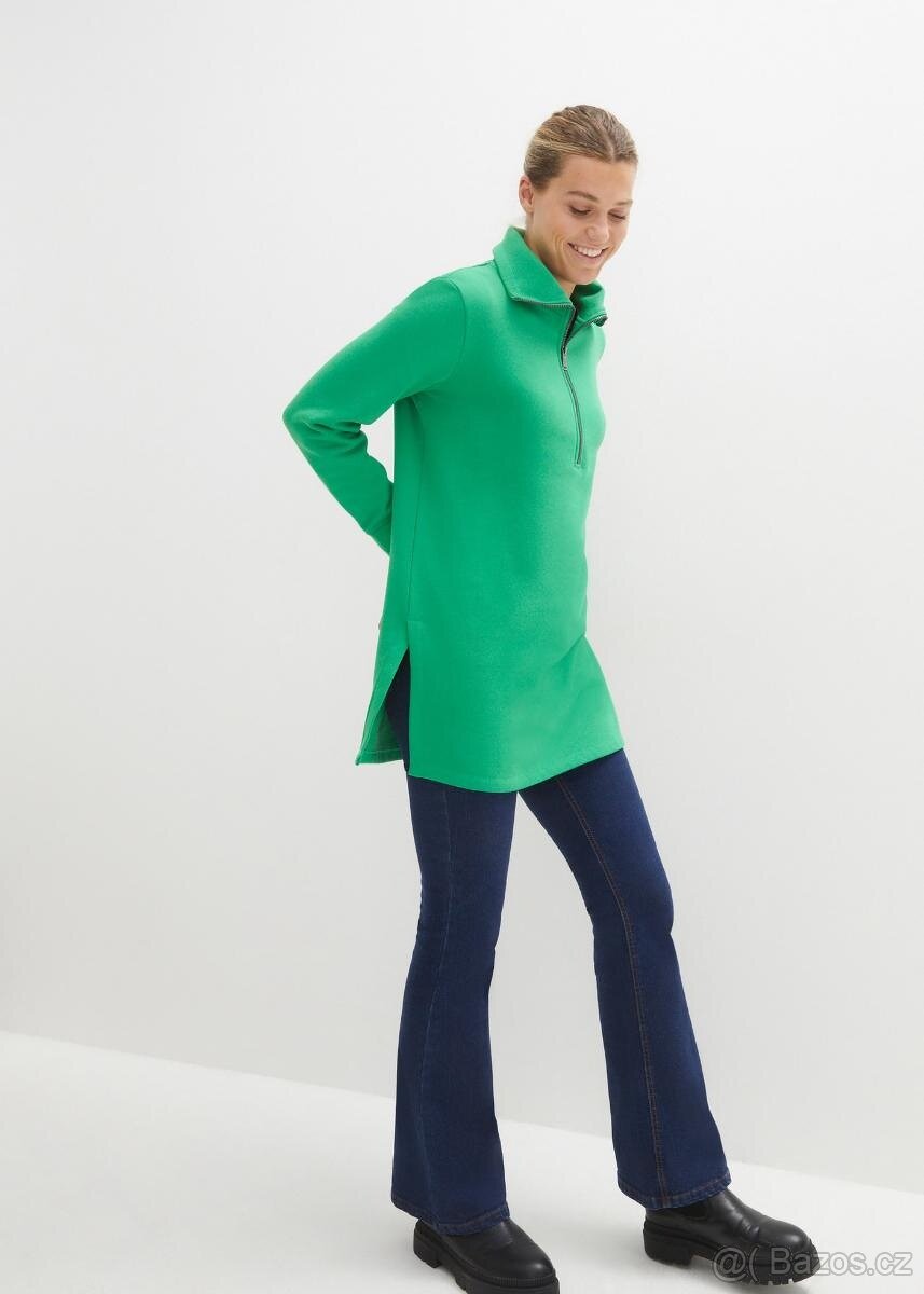 Nová zn. Bonprix vel. 40/42. Délka 85 cm, prsa a pas 2 x 60 cm v klidu, povolí 2 x 64 cm. Je lehounce pružná, zevnitř teplá, 60% bavlna. Vysoký stojáček na zip. Osobně nebo balíkovnou, zásilovnou.