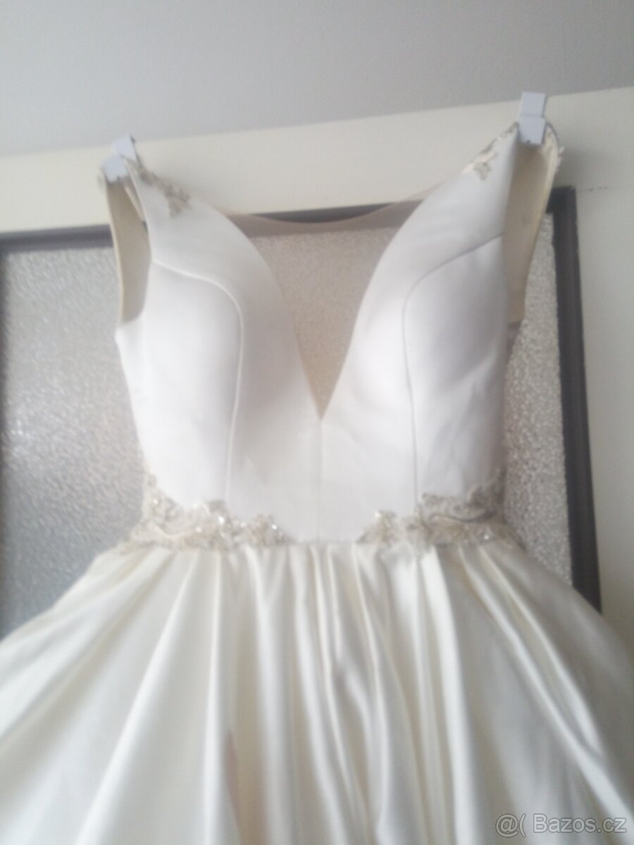 Prodám svatební šaty, vel. 40/42 - [20.2. 2026]Prodám svatební šaty, mat. svatební satén, vel. 40/42. Zapínání na zip, 3/4 rukáv, spodnička.