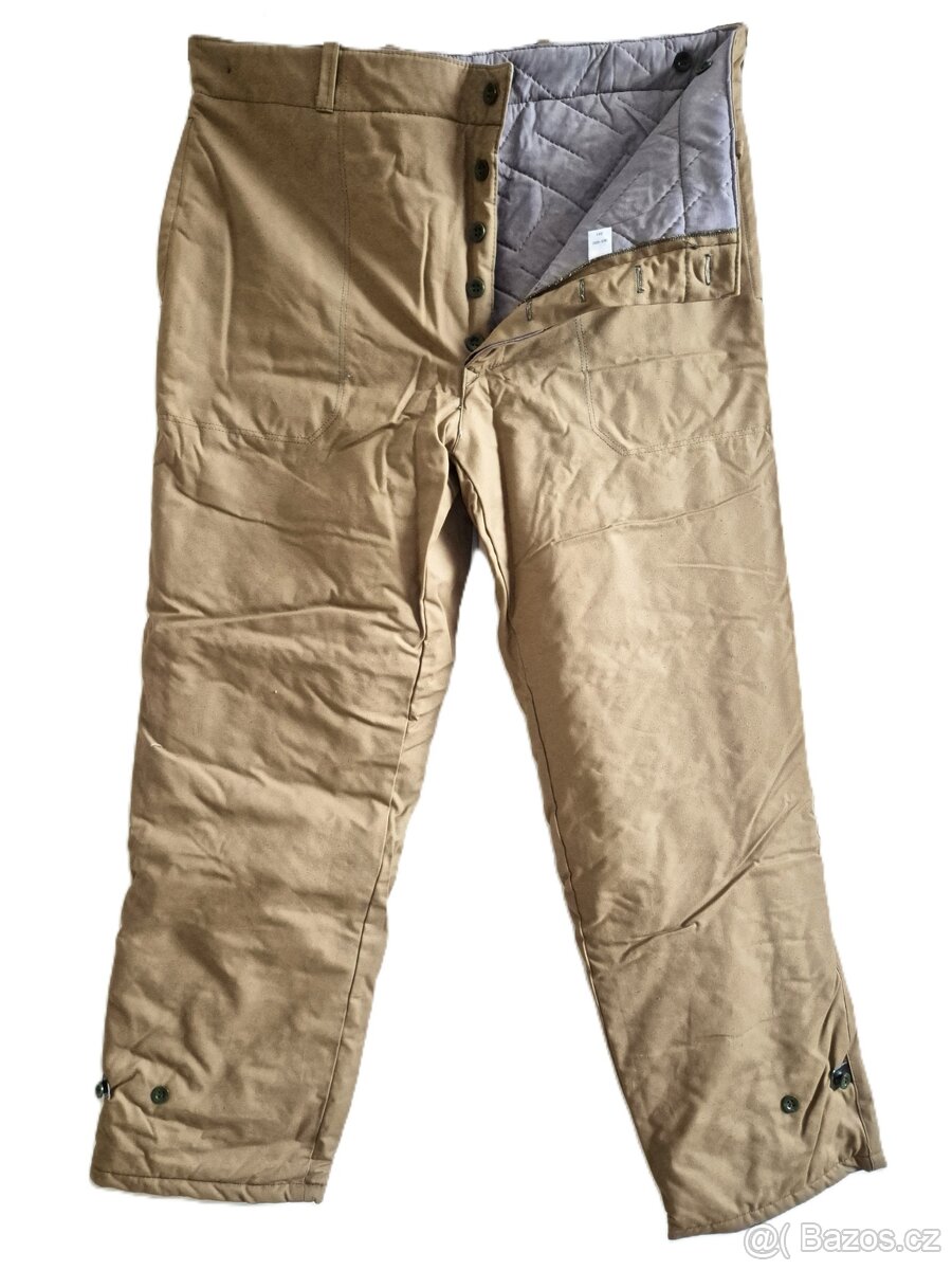 Pracovní, zimní, zateplené, vatované, vaťákové kalhoty, zapínání na knoflíky