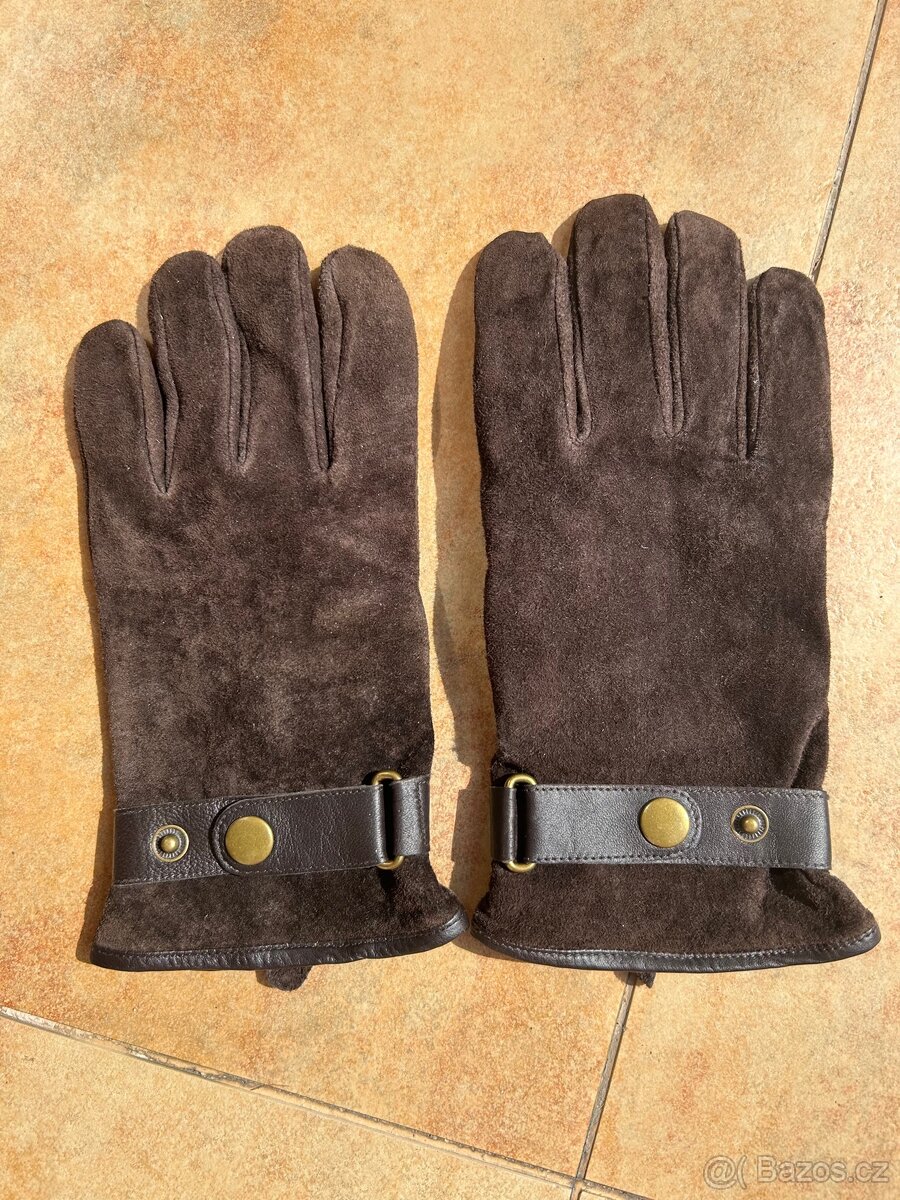 Prodám nové kožené rukavice Tchibo, vel. 9,5. Hnědá barva.