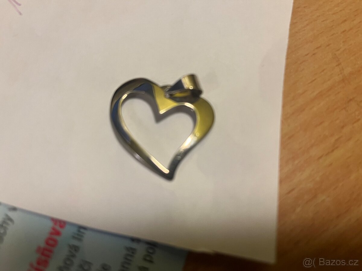 Prodám stříbrný přívěsek, nošený asi půl roku. Bytelný, průměr 3 cm. Cena 200 Kč.