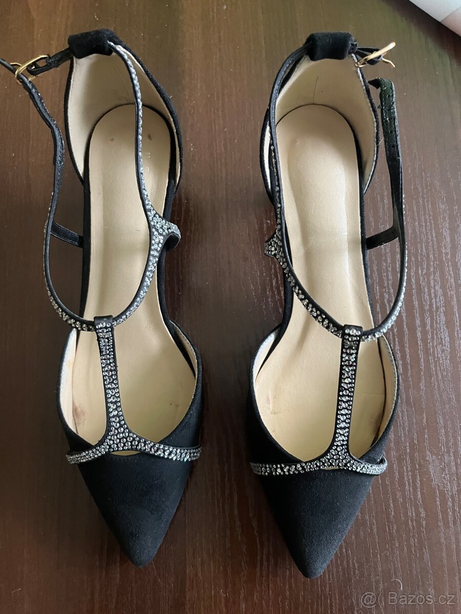 Dámské boty - lodičky společenské - vel. 40 - top stav - [28.2. 2026]prodám dámské boty - lodičky, materiál - černý semiš, náhradní pár podpatků, top stav, jako nové, 1x obuté na svatbě, velmi pěkné, cena + zásilkovna, balíkovna