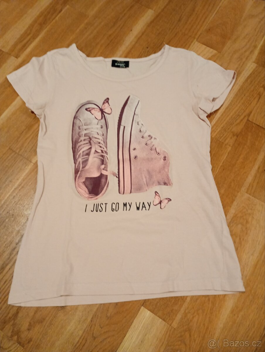 Růžové dívčí tričko s krátkým rukávem a s potiskem velikosti 146/152