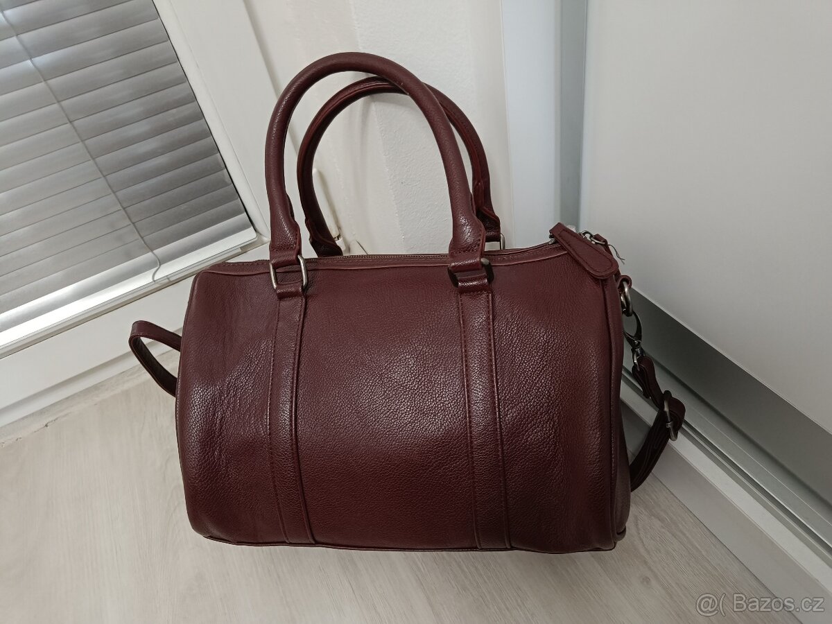 Sytý tmavý odstín, rozměry na fotce, velmi prostorná, k nošení v ruce, přes rameno nebo jako crossbody, popruh je nastavitelný. Na povrchu pár nepatrných nedostatků - nafoceno.