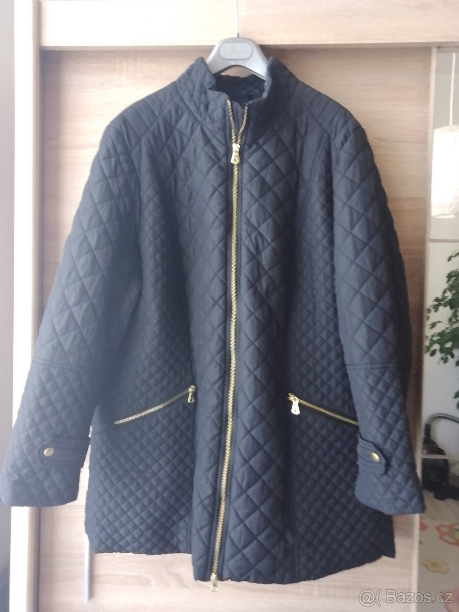 Prodám dámskou podzimní bundu/kabátek, zn. Bonprix, vel.52, barva černá, zlaté zipy, prsa 70 cm, boky 70 cm, délka 85 cm.