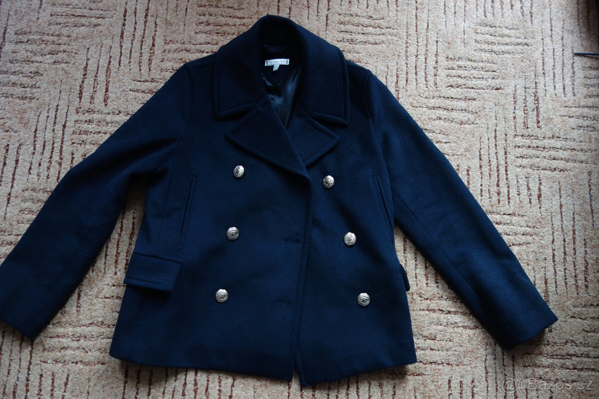 krásný tmavě modrý kabátek TOMMY HILFIGER , vel M/38, složení 50% vlna a 50 % polyester, kovové logo na rukávu a ologované knoflíky, míry: délka 65, obvod přes hrudník 100, rukáv od ramene 63,původní cena 4500, kabátek je nenošený stav nového- potřebuji jinou velikost, cena 1600 + pošta