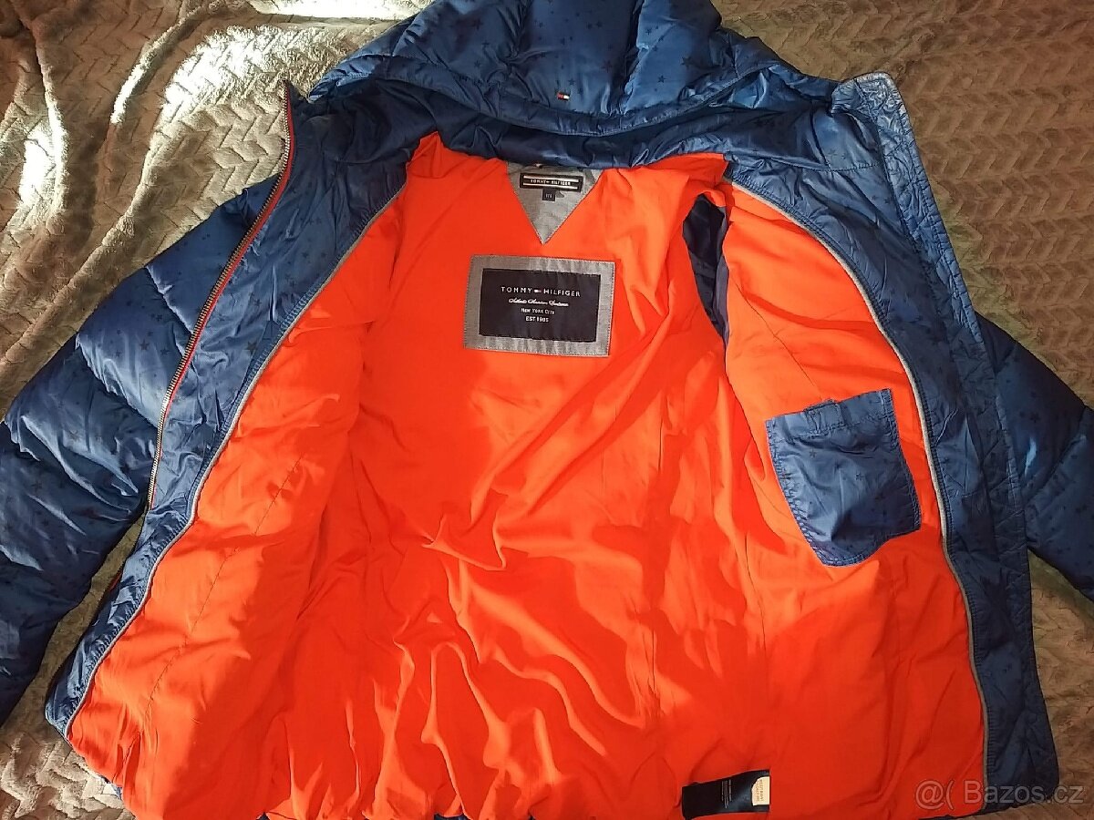 Prodám zánovní originál dívčí zimní péřovou bundu Tommy Hilfiger.