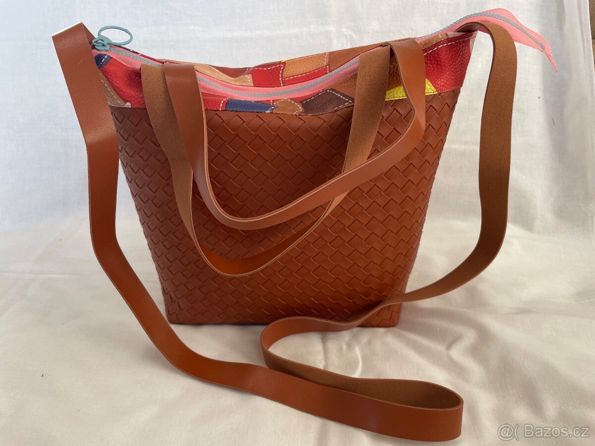 Kabelka přes rameno i do ruky. Pouze 1 kus, nová. Ruční práce. S barevnou květinovou podšívkou se 4 kapsami, vyztužená. Zapínaní na zip. Materiál :umělá kůže