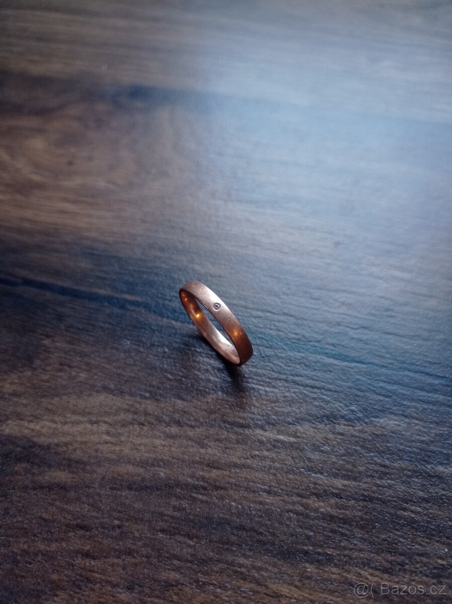 Růžové zlato s briliantem, velikost 54.