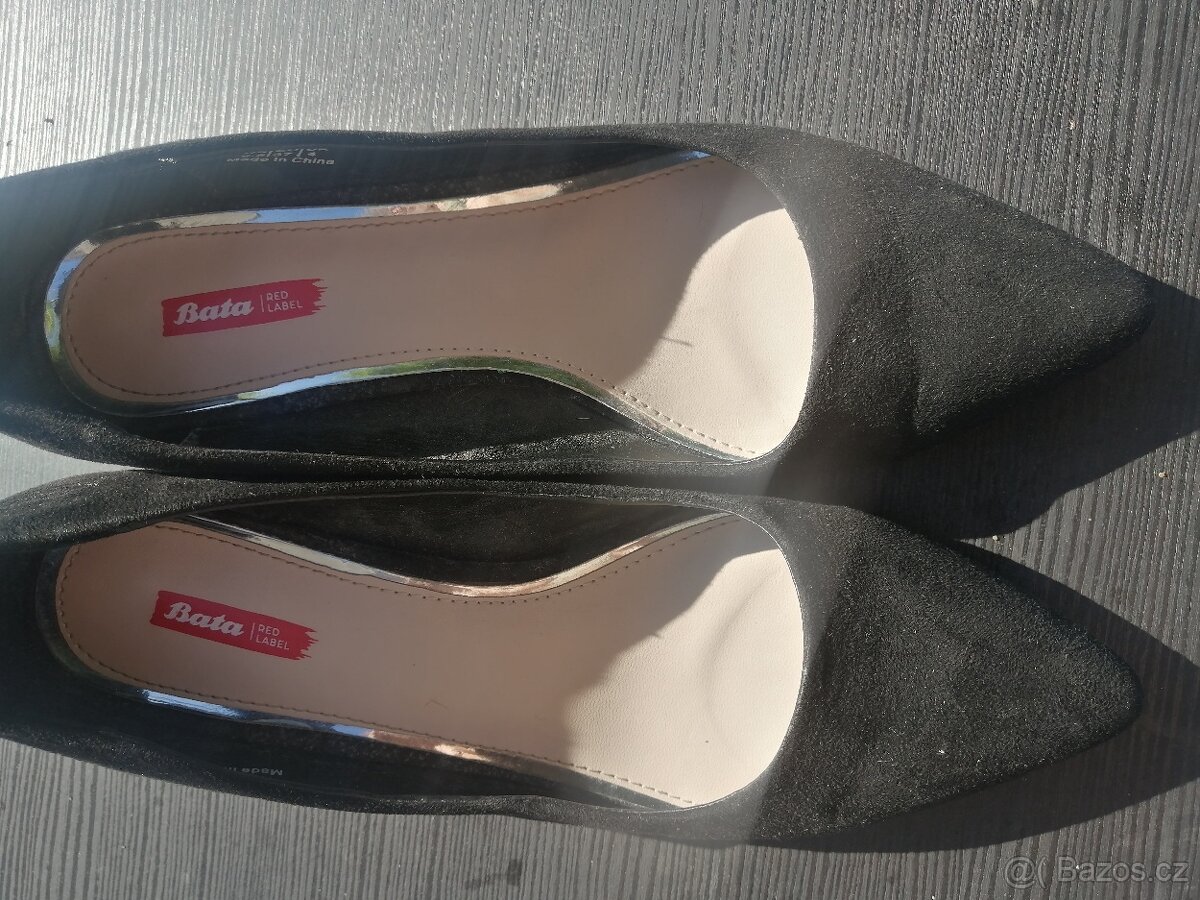 Nabízím dámské společenské boty Baťa vel. 37,5 + kožené nazouváky Lasocki vel. 36. Cena á 90,-Kč/pár nebo nabídněte.