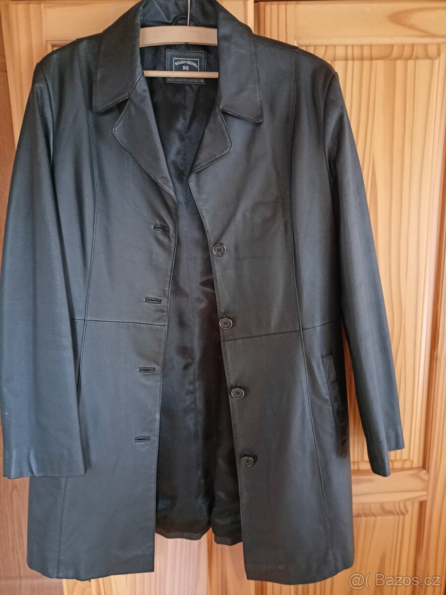 Prodám pěkné nepoškozené dámské kožené sako, vel. L, zn. WD, měkká kůže, barva černá, dvě kapsy, podšívka polyester, přes prsa 46 cm, pas 45 cm, délka 85 cm, délka rukávu 61 cm, délka rukávu od krku 75 cm, šířka přes ramena 45 cm, zapínání na knoflíky, top stav - jako nové. Cena 180,- Kč + poštovné, platba na účet.