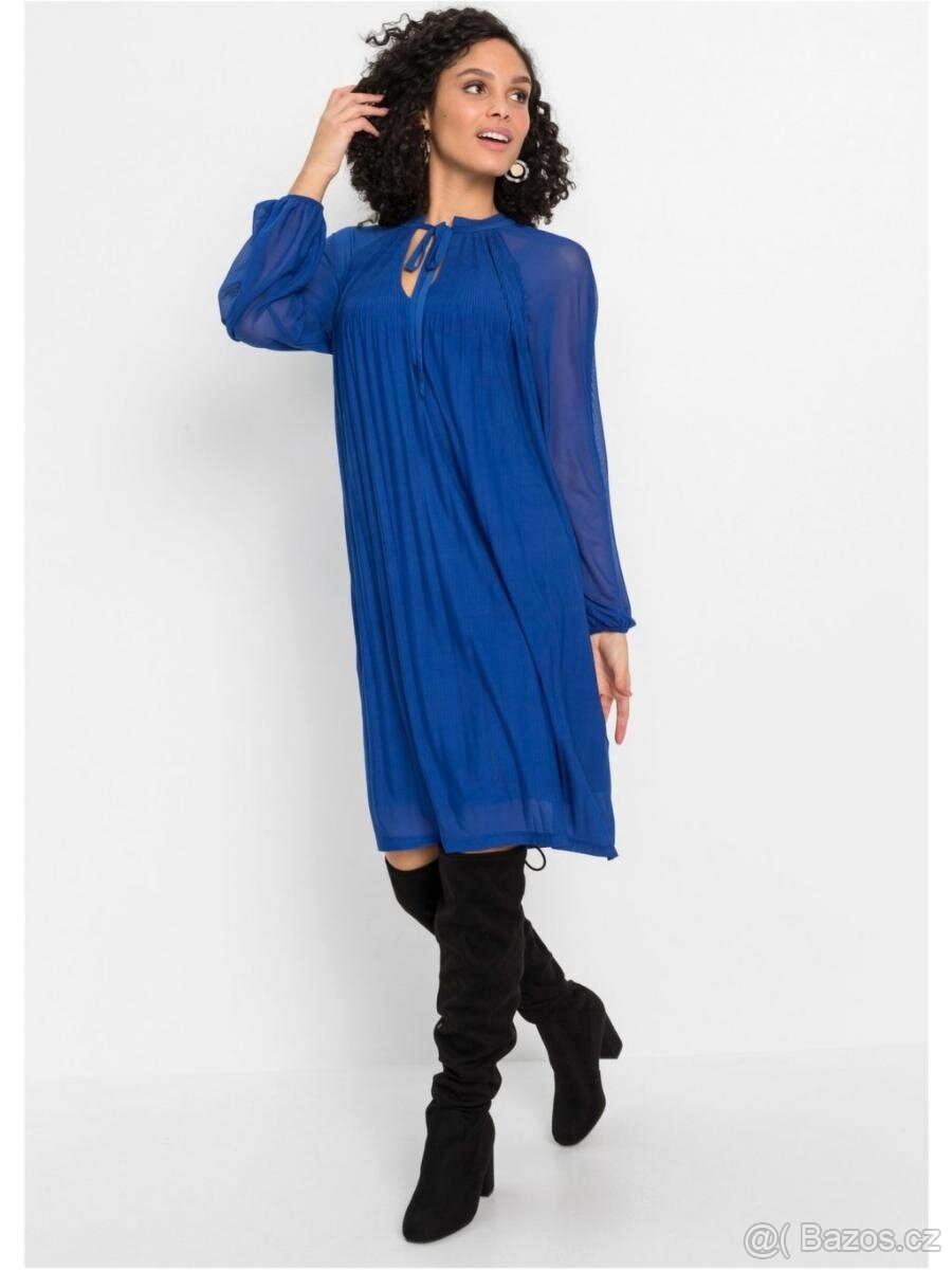 Nové zn. Bodyflirt vel. uvedena 36/38, klidně až 42. Délka 98 cm, prsa 2 x 54 cm v klidu, povolí 2 x 64 cm, pas 2 x 65-80 cm. Jsou moc krásné a elegantní, barva královská modrá. Osobně nebo balíkovnou, zásilkovnou.