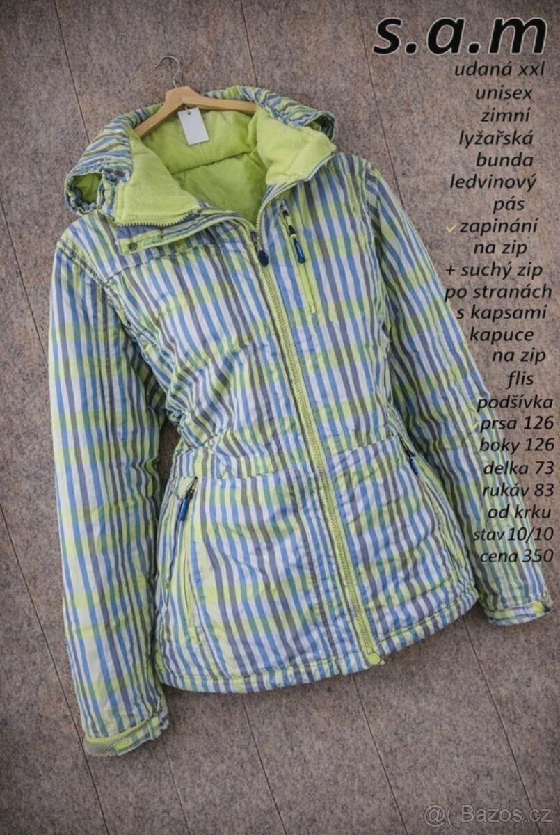 Prodám unisex bundu na lyže/ snowboard, velmi peka, teplá, spoustu kapes, včetně kapsičky na skipas, velikost XXL, míry na fotogratii