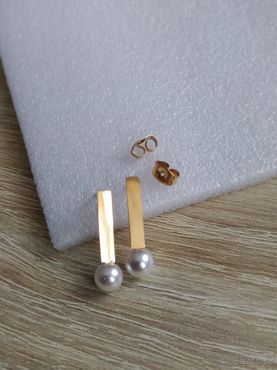 Náušnice s perličkou , ocel pozlacená . Nové . Sleva na sety .