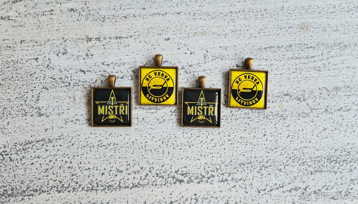 Prodám krásné přívěsky s logem VERVA LITVÍNOV zalité ve speciální ochranné pryskyřici. Ruším sbírku spon a přívěsku. Při platbě předem na účet poštovné hradím já.V případě zaslání na dobírku cena 190 Kč + 120 Kč (dobírka). Samozřejmě možnost i osobního předání. Kadaň okr. Chomutov