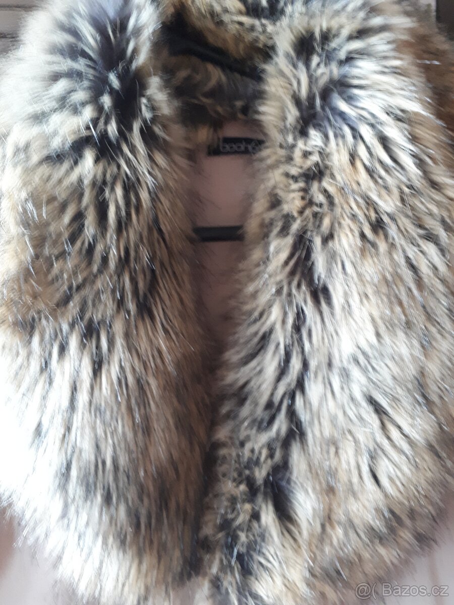 Béžový kabát s kožešinou vel. S