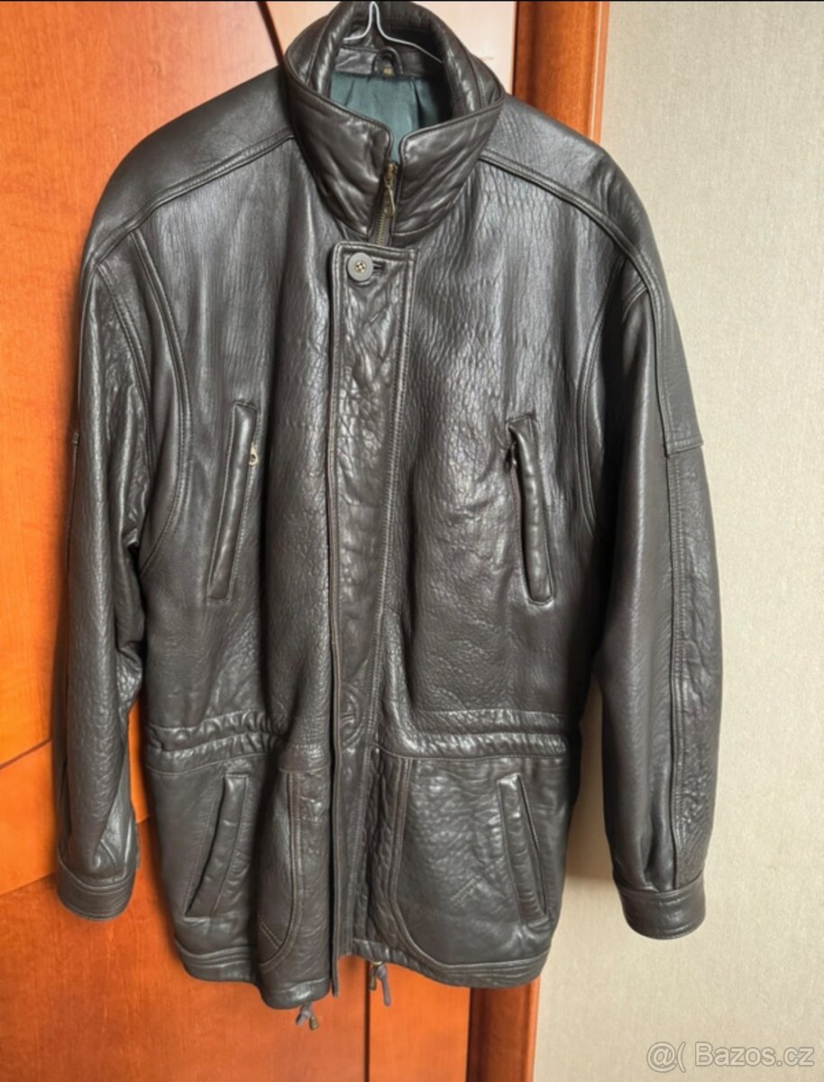 Kožená bunda zateplena, pilotka , vel.48