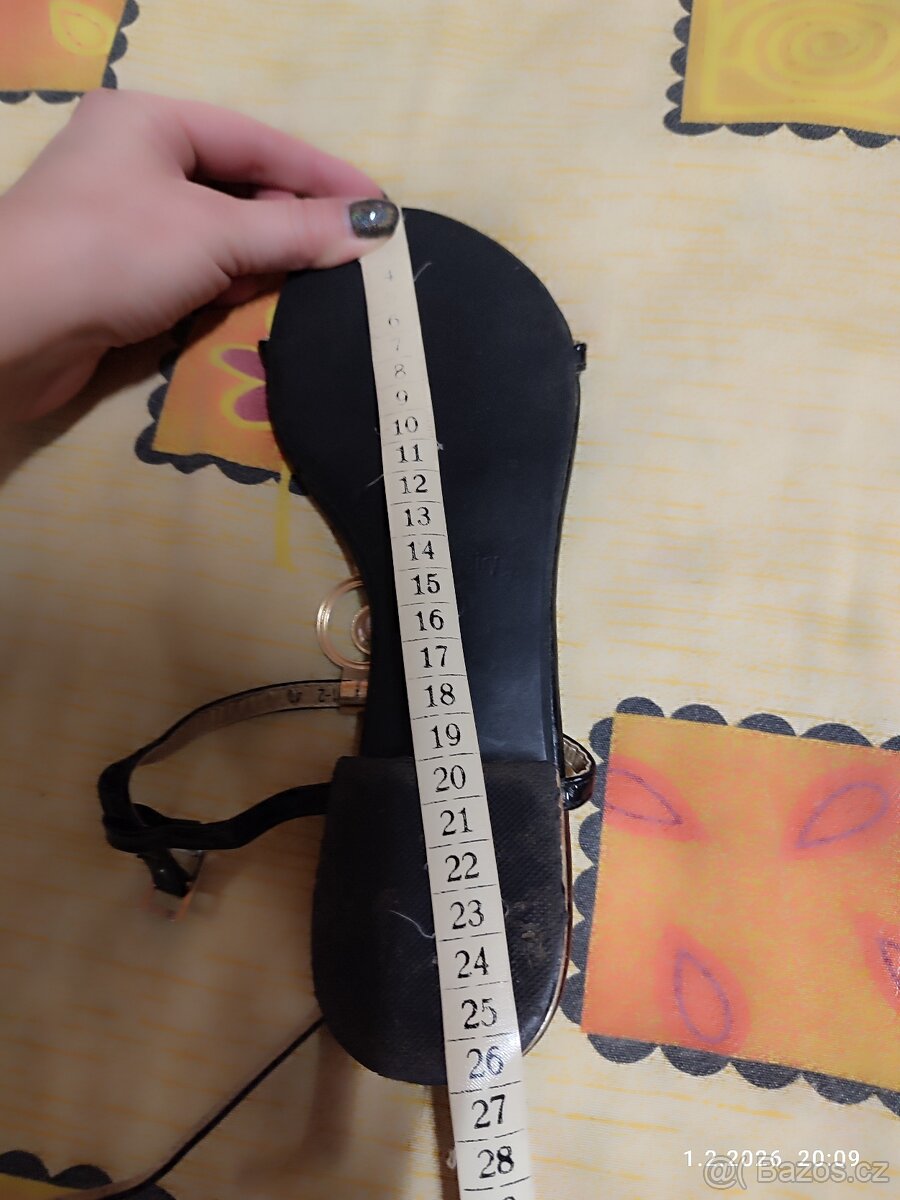 Dámské černé sandále vel. 38/39 - [7.2. 2026]Prodám dámské černé sandále vel. 38/39 (stélka 25 cm). Jednou vzaté, nesedí mi velikost. Osobní předání Praha Letňany nebo Balíkovna 80 Kč.