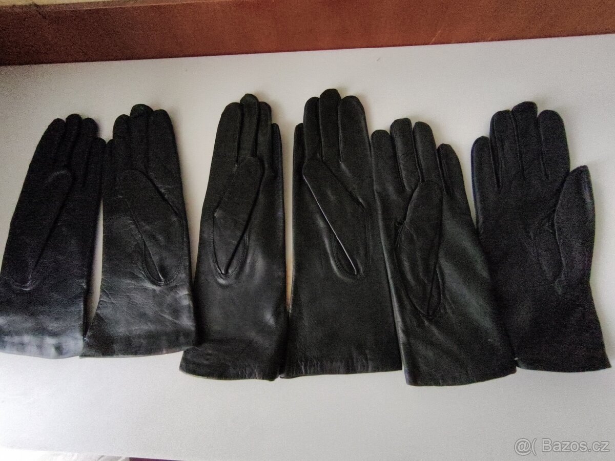 Prodám 3 páry kožených nenošených dámských rukavic 2x velikost 7,5 a 1x velikost 20. Cena je za jeden pár.