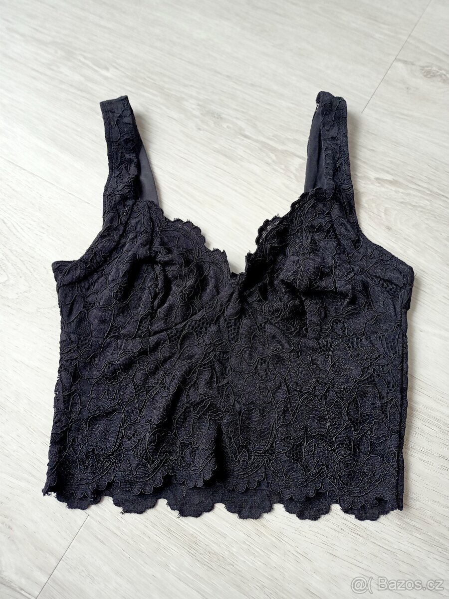 Prodám nový krajkový korzetový top, zn. Amisu, vel. M, celková délka 41cm, délka vzadu 21cm, prsa 34cm, šířka dole 31cm, podšívka, složení materiálu na obrázku, cena 140 Kč + poštovné.