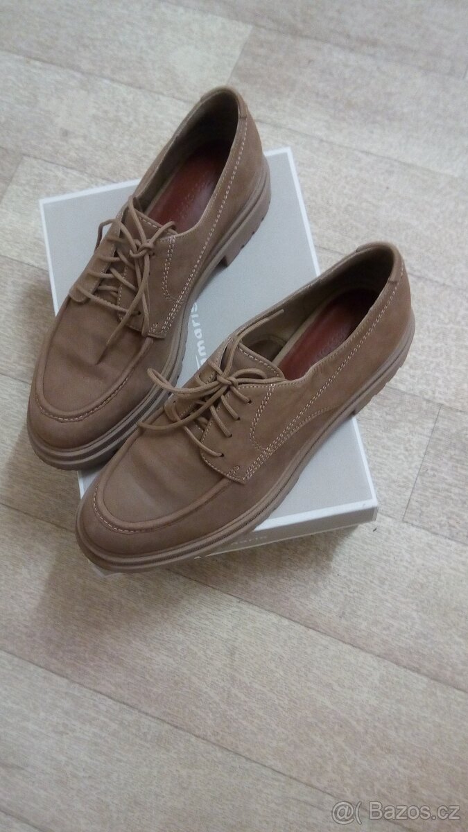 Prodám dámské kožené šněrovací polobotky, sv.hnědá barva,....vel.41 - 7 - 27,..vnitřek kožená stélka, málo nošené,..pův.cena 1.200,-kč,...prodám za 450,-kč