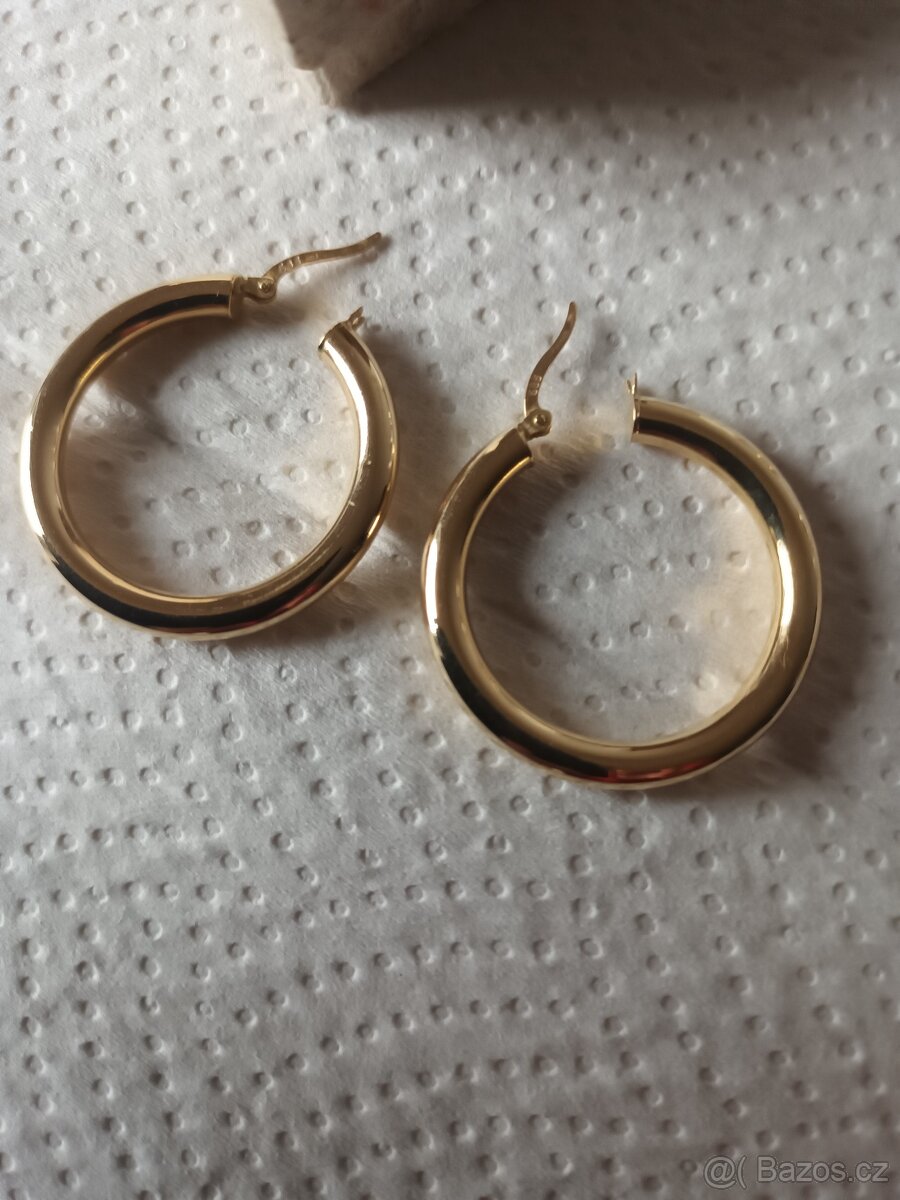 Prodám dámské zlaté náušnice 585, g3.3, průměr 3,5cm,jsou duté.