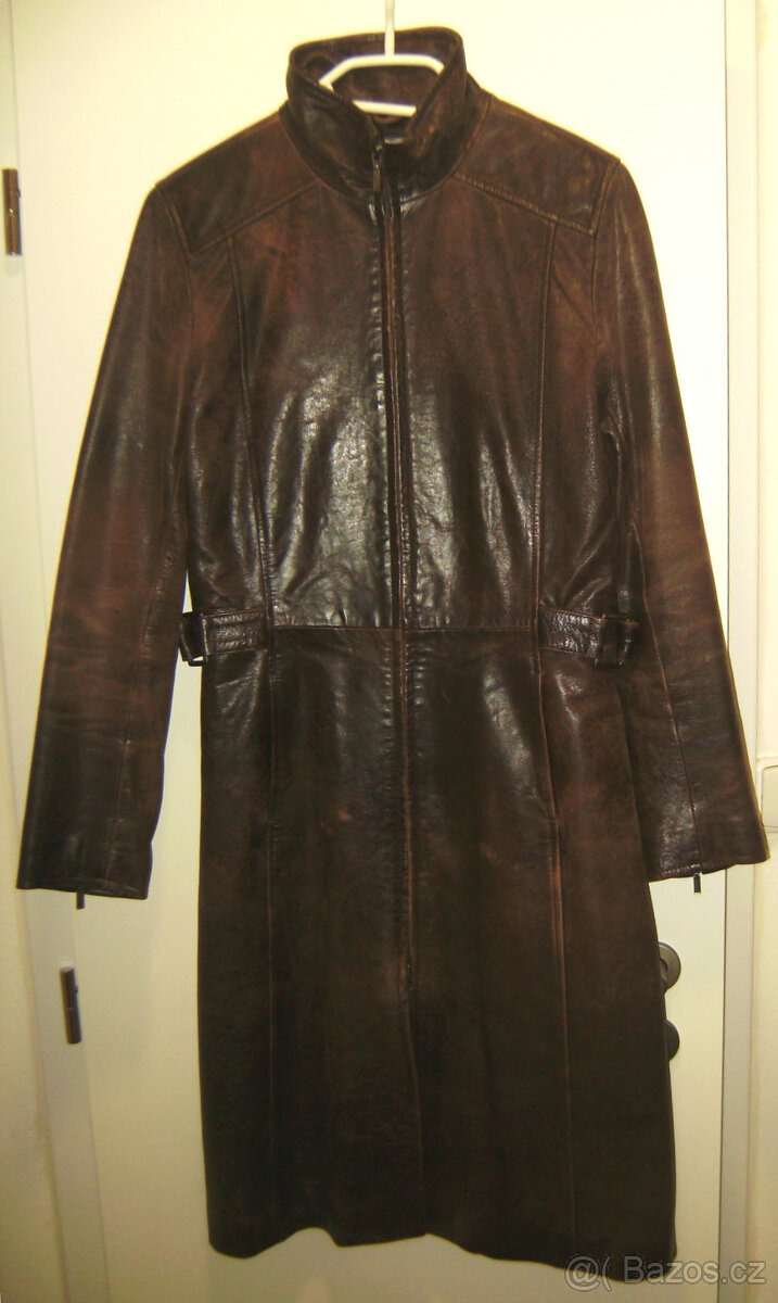 Dámský hnědý kožený kabát vel. 40