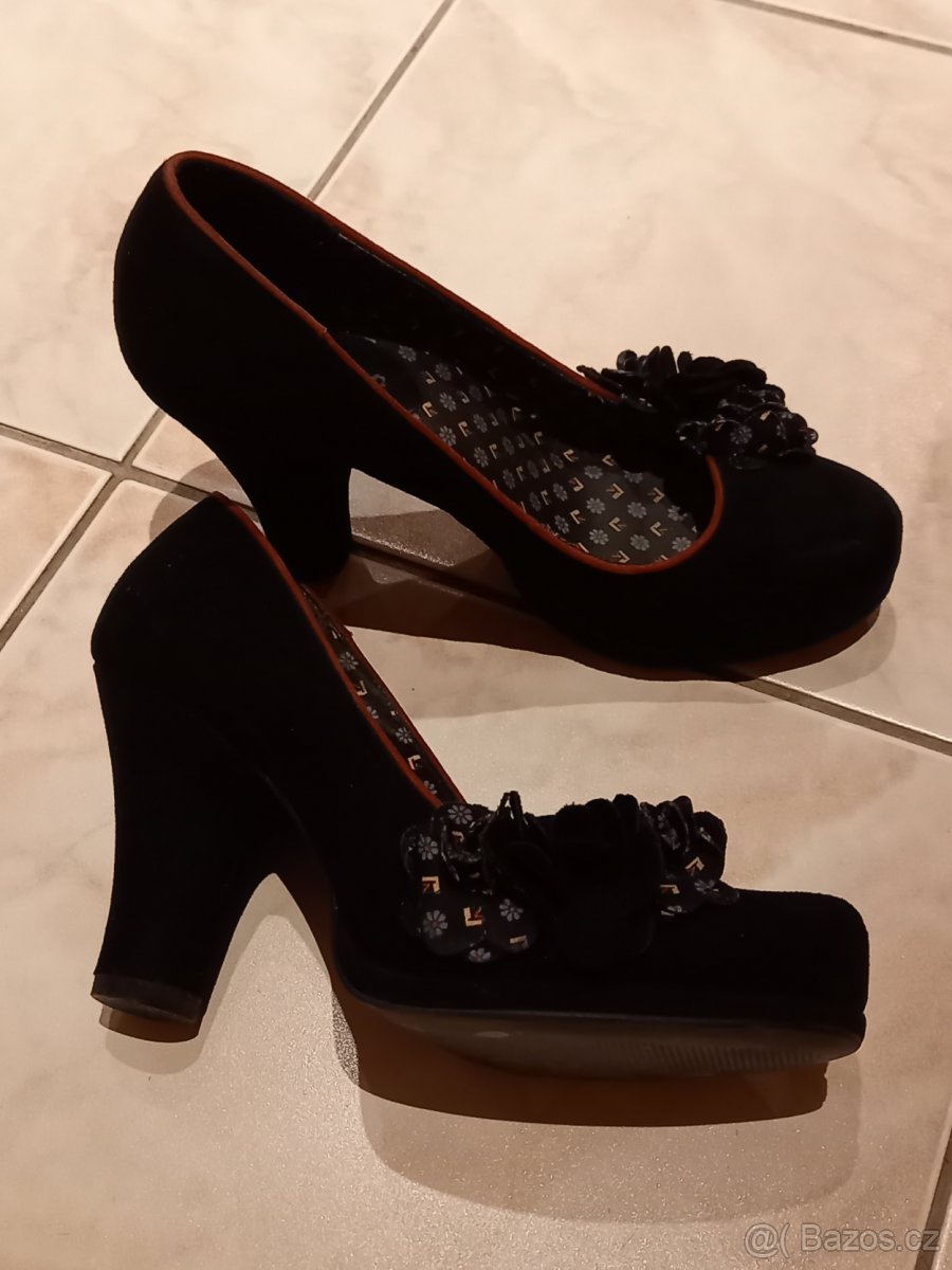 Černé lodičky s květinou, vel. 37, nošené velmi málo.