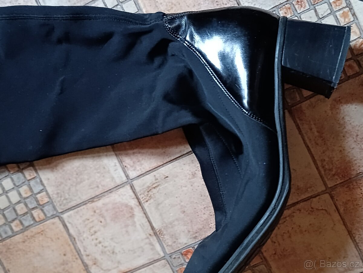 Elastické vysoké černé kozačky. K ceně nutné připočítat postovné.