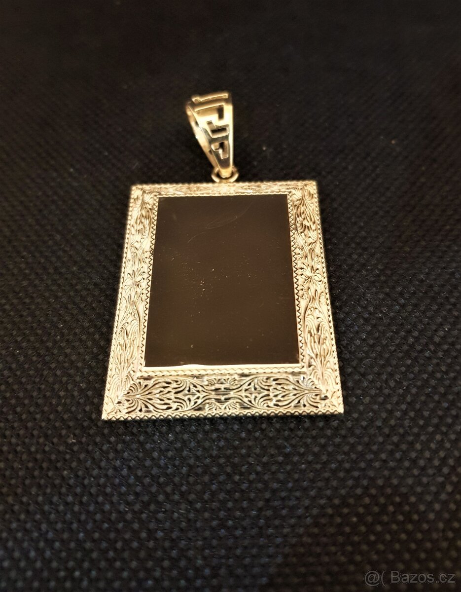 Prodám velký přívěsek destička o váze 13,18 gramů, rozměry 4,2 cm x 3,3 cm x 0,4 cm, tloušťka oka 0,8 cm. Český punc 14 kt. Vážní zájemci volejte!