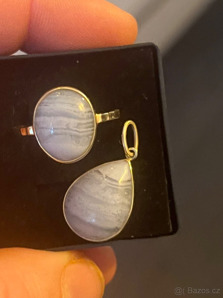 Zlatý prsten a prívesek s chalcedonem