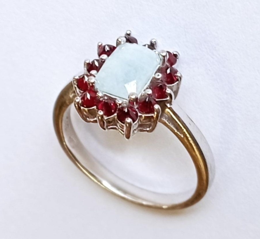Nádherný stříbrný prsten s granáty - ryzost 925/1000, váha 3,29 gramů, punc 925 - kozel 2, průměr prstenu 16,9 mm - to je velikost 53, ozdoba s granáty o velikosti 1,2 x 1,06 cm, středový kámen 0,7 x 0,5 cm, všechny granáty jsou stejné barvy, jen se to nedá dobře nafotit, prsten je jako nový.