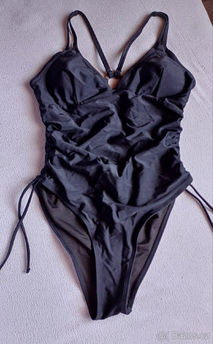 Prodám jednodílné černé plavky, velikost L. Délka cca 72 cm, posuvná ramínka. Pod prsy cca 78 cm. Na bocích tkaničky na shrnování. Úplně nové, nesedí mi velikost.