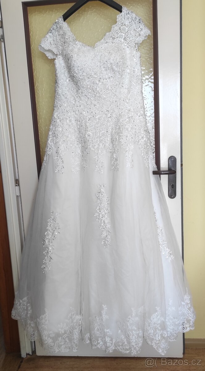 Prodam krasne svatebni saty s vystrihem do V a ackovym strihem,jsou zdobene koralky. Delka satu : 152cm, hrudnik 100cm a pas 83cm, ale tim ze jsou na snerovani se krasne prispusobi.kupovala jsem je nove.jsou vycistene jen ze spoda jsou lehounce cmouhy ale na venek to neni videt.popripade k vyzkouseni milovice nad labem cena 4000kc