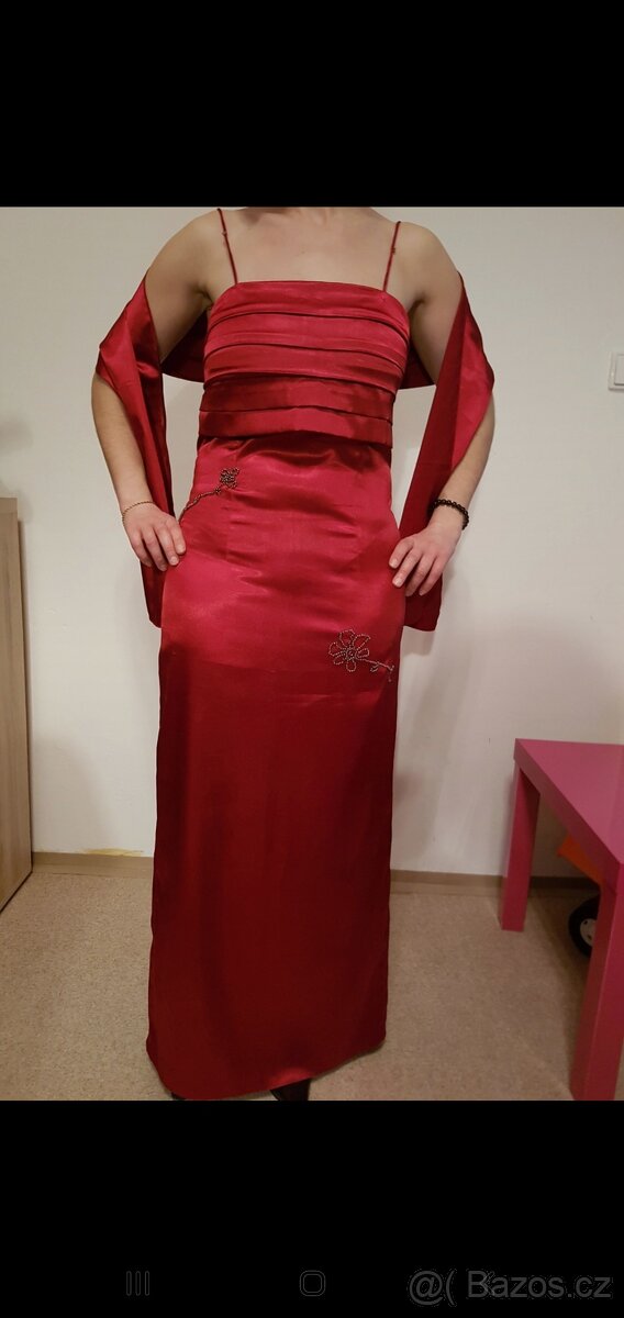 Nabizim spolecenske saty ,latka saten,site na miru svadlenkou,vyuzite na jeden ples. Maji na zadech zip,vpredu koralkovou vysivku. K satum patri sal. Vel.40. Cena je i s postou