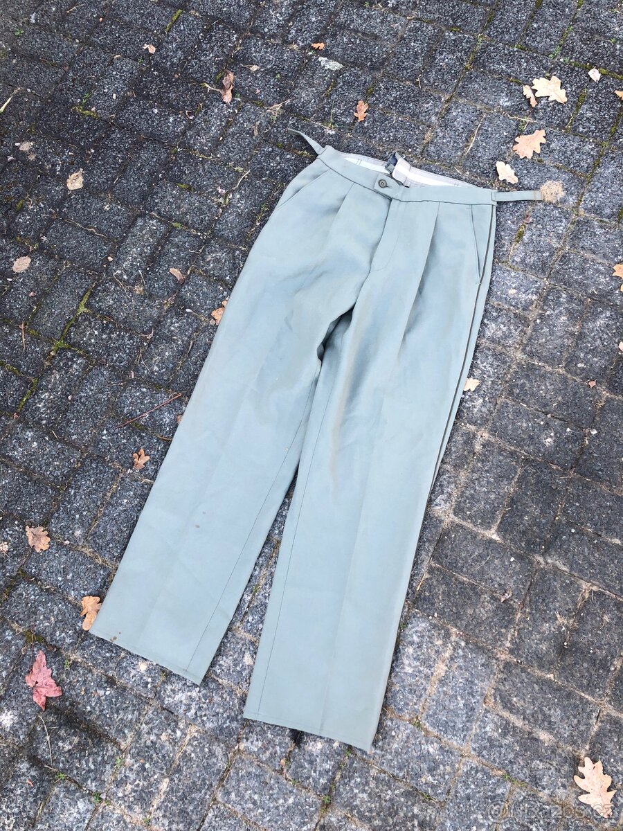 Prodám vojenské vycházkové kalhoty VZ.97. Výroba Kras Brno, dobrý stav, velikost v pase 37, délka 102 - vypadají, že jsou v pase založené, možná by šly zvětšit. Vhodné k obleku, či pro sběratele. Možnost osobního předání v ČB, nebo při platbě předem poslání zásilkovnou.