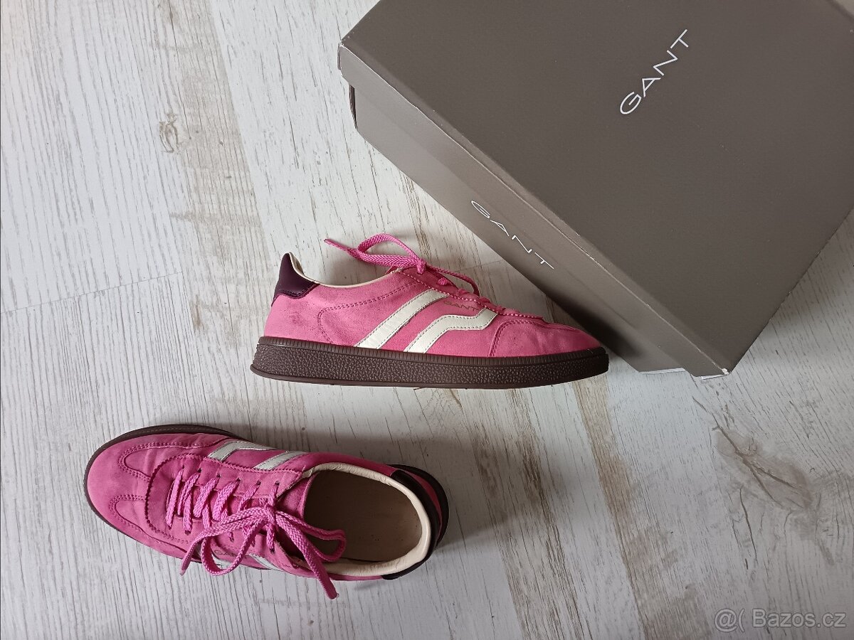 Krásné dámské boty tenisky Cuzima, velikost 38, růžová barva s tmavě vinovou vzadu, hladká a nubukova kůže polstrovany okraj svršku a jazyk, protiskluzová podrážka