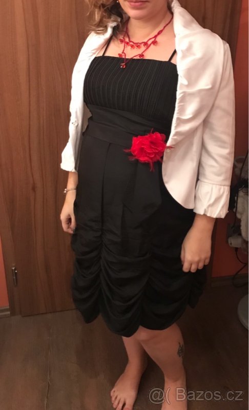 Prodam společenské saty vel L jednou na sobě dokonce sem se díky střihu vlezla i s bříškem. Na zádech je zabkovani a stuha na stáhnutí.