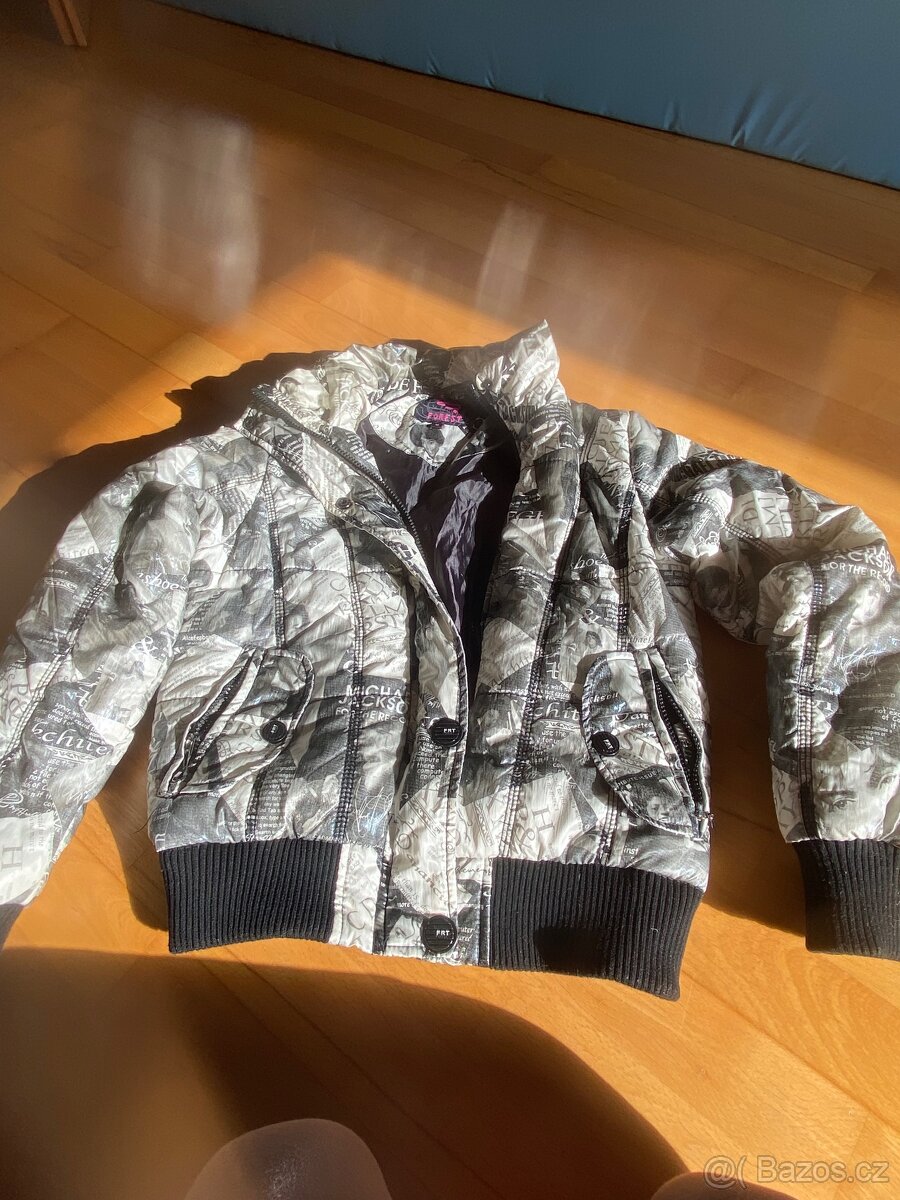 Krátká lehká bunda, zip.Velikost menší M. Zateplení polyester+nylon.Celoplošný potisk Michael Jackson. Nošená,ale v dobrém stavu.Chybí kapuce.Zašlu Zásilkovna +79Kč,platba předem na účet.