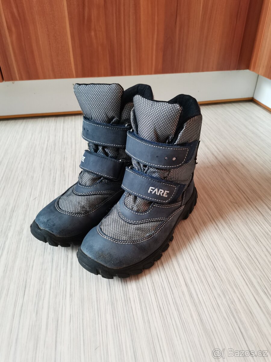 Zimní barefoot boty, hladká kůže a textil, plyšová podšívka uvnitř celé boty, klima-membrána, která je zabudována mezi vrchovým materiálem a podšívkou=nohy zůstávají v suchu. Boty jsou naimpregnované sprejem přímo výrobcem určeným. Snadné nazouvání, perfektní suchý zip. Po jednom dítěti. Ve velmi dobrém stavu.